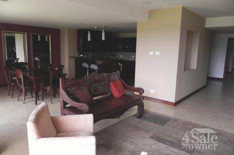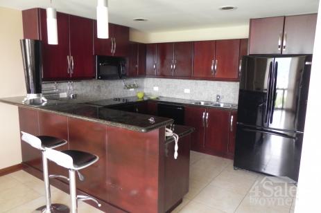 amplio apartamento amueblado de 3 dormitorios con una vista espectacular a La Sabana y las montañas. Tiene sala comedor con grandes ventanales,balcon, cocina abierta con sobres de granito y línea blanca incluída, baño de visitas, sala de TV con sistema de audio. Dormitorio principal con sala, baño con acabados de mármol, walkin closet. 2 dormitorios secundarios con mucha luz natural y comparten un baño. cuarto de pilas con closets, dormitorio de servicio con baño y espacio para una oficina. estacionamiento para 3 carros