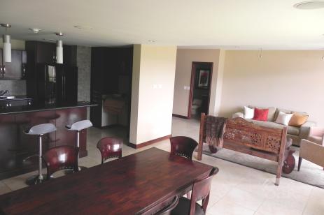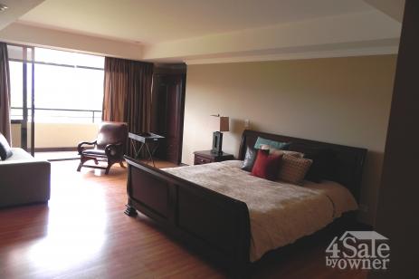 amplio apartamento amueblado de 3 dormitorios con una vista espectacular a La Sabana y las montañas. Tiene sala comedor con grandes ventanales,balcon, cocina abierta con sobres de granito y línea blanca incluída, baño de visitas, sala de TV con sistema de audio. Dormitorio principal con sala, baño con acabados de mármol, walkin closet. 2 dormitorios secundarios con mucha luz natural y comparten un baño. cuarto de pilas con closets, dormitorio de servicio con baño y espacio para una oficina. estacionamiento para 3 carros