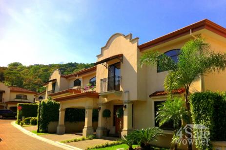 Exclusiva casa en condominio con acabados de lujo. Con una distribución muy funcional. Amplia sala y comedor, cocina totalmente equipada y se comunica a la terraza,4 dormitorios, de los cuales 3 tienen su propio baño. 2 salas de TV, mas de 200m2 de jardines, bodega, cuarto de servicio y area de lavandería. el residencial tiene casa club con 3 piscinas con calefacción solar, cancha de tennis.