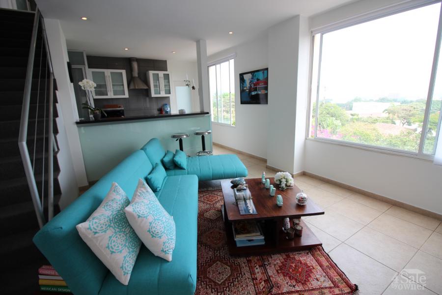 Apartamento de 2 pisos con 2 terrazas amplias y vista panorámica. Area habitable 85m2. 2 terrazas amplias no estan incluídas en este metraje ya que son áreas comunes de uso privativo. El condominio cuenta con casa club en la azotea. La piscina esta en la planta baja.